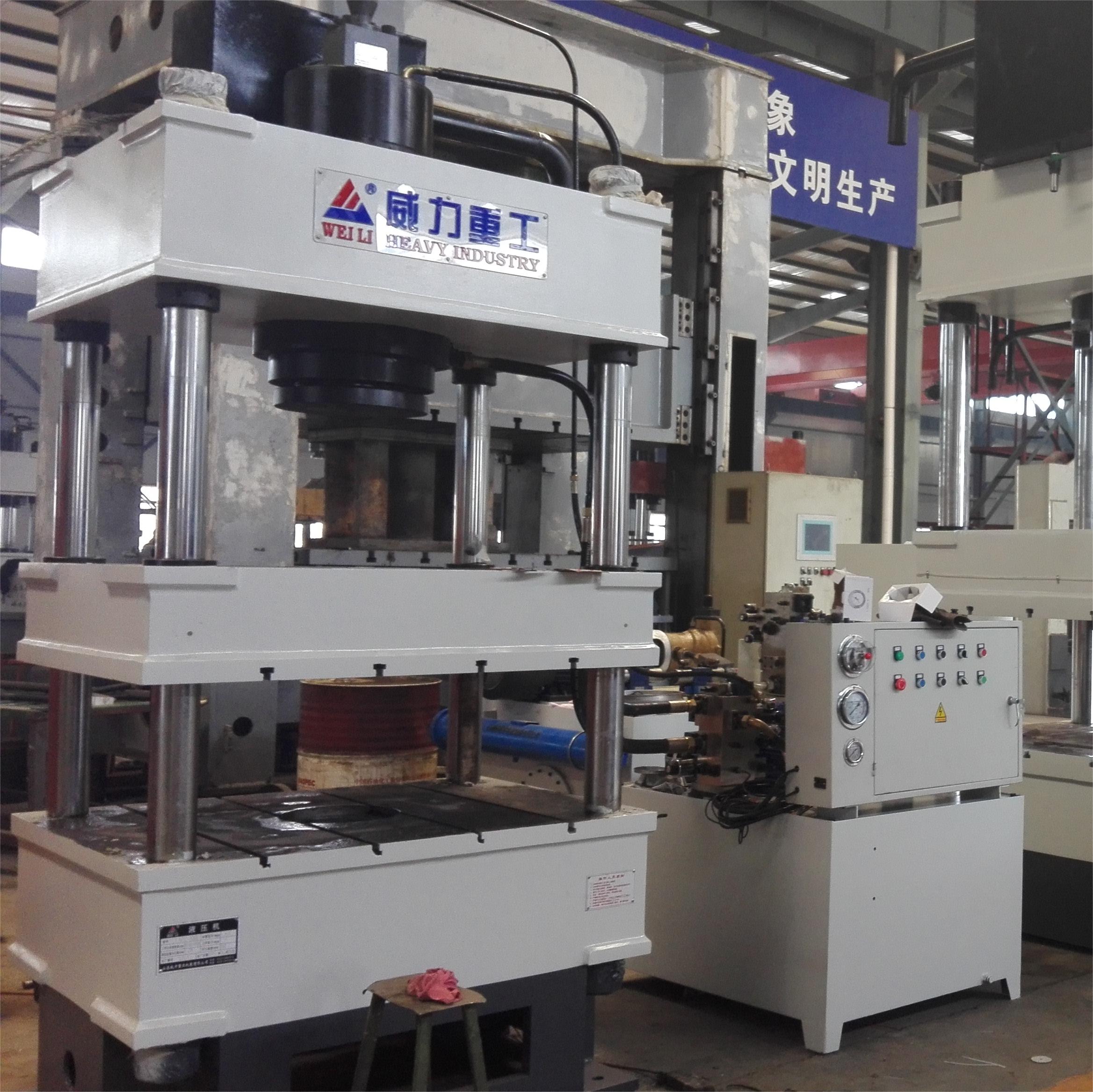 【產(chǎn)品描述】:200噸三梁四柱液壓機(jī)YW32-200T是一款小型液壓機(jī),這款液壓機(jī)適用于金屬材料的壓制工藝,如:金屬沖壓彎曲、翻邊、薄板拉伸和金屬零件的壓裝、校正、冷擠等,還可實(shí)現(xiàn)塑料制品、粉末制品的壓制成型工藝。 200噸三梁四柱液壓機(jī)分為主機(jī)、液壓傳動裝置和電氣控制裝置三部分組成,具有獨(dú)立的液壓傳動裝置和電氣控制箱,可以在操縱臺集中控制,實(shí)現(xiàn)調(diào)整、手動和半自動循環(huán)三